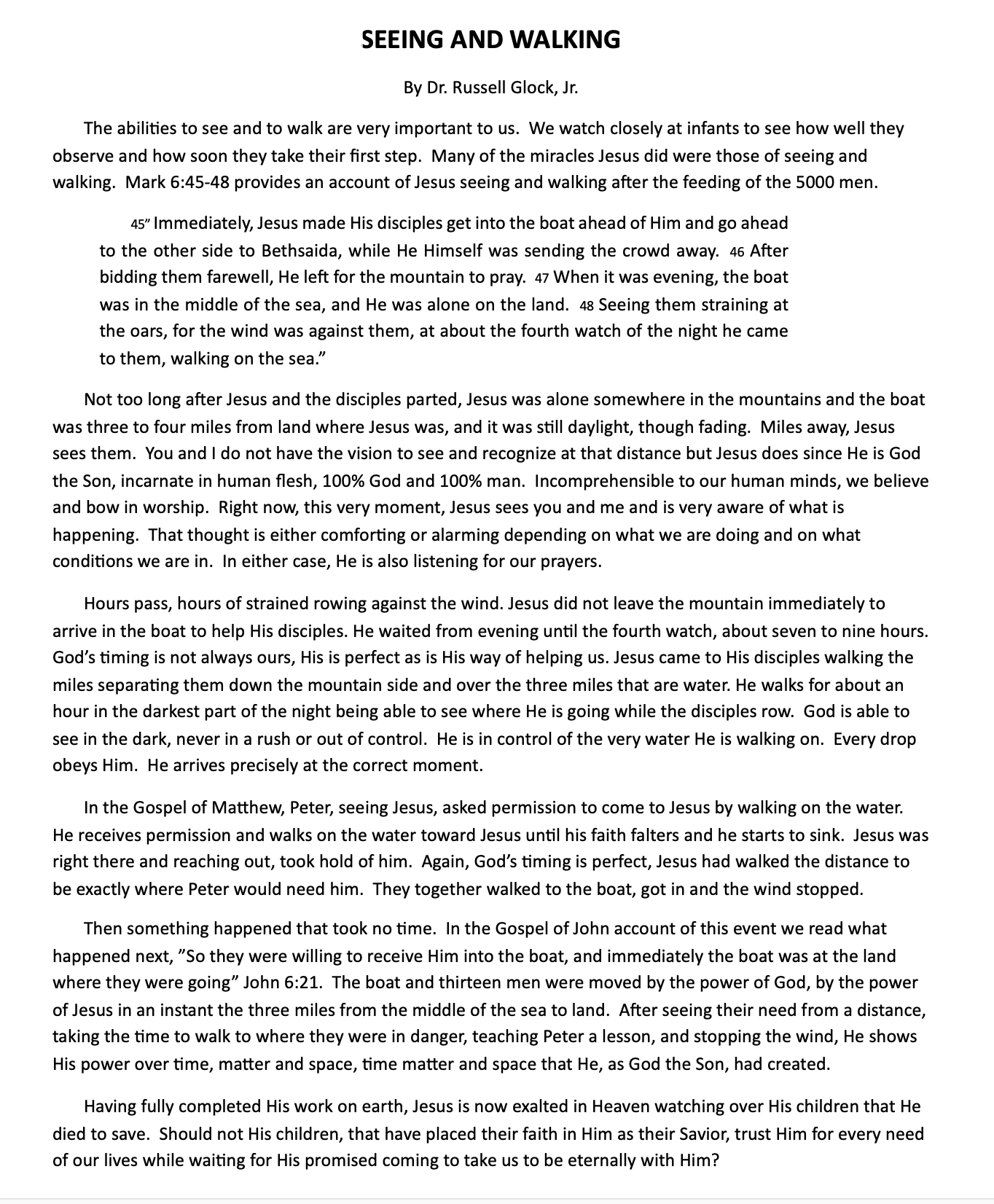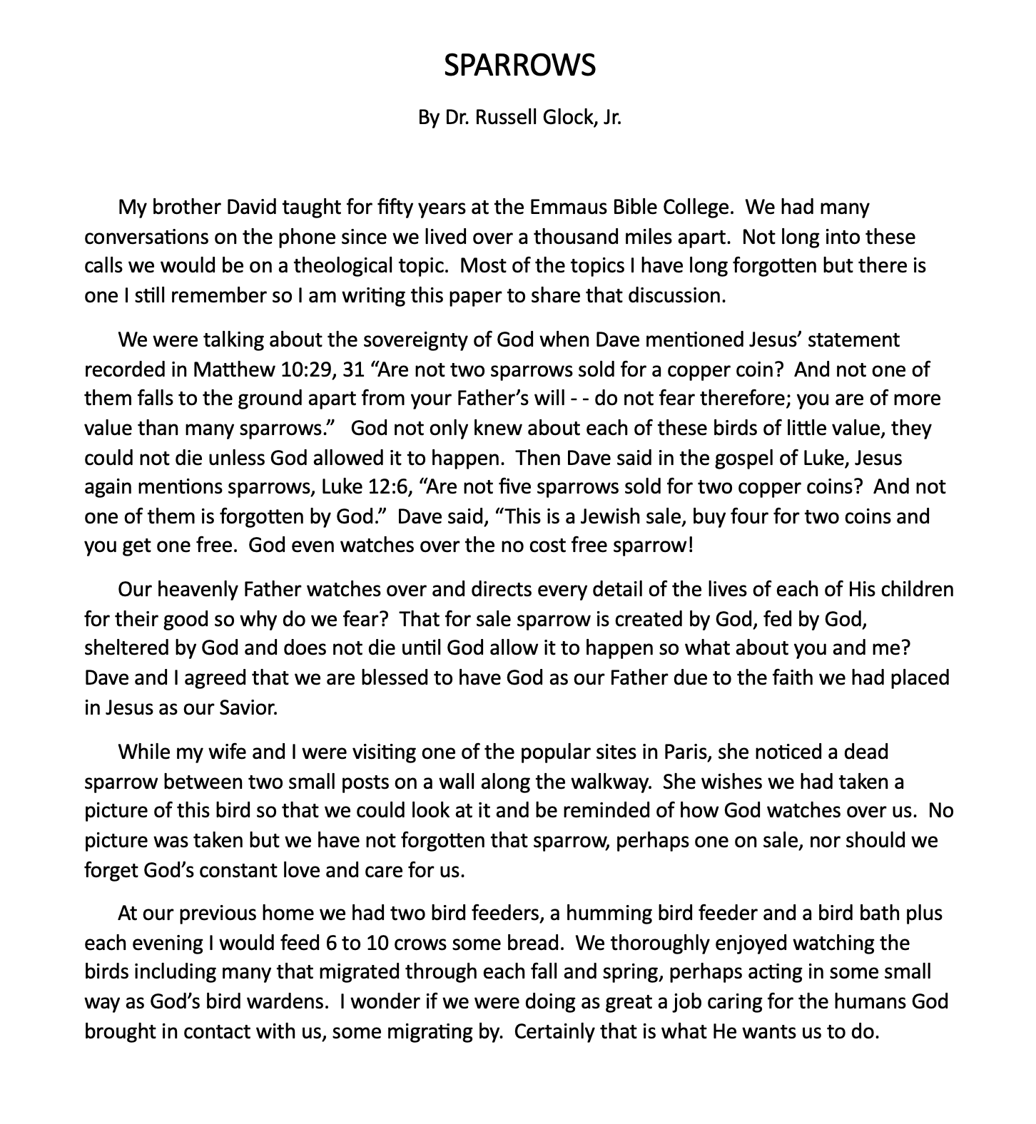 Russ and Pat Glock have walked with the Lord for many years, and have also celebrated their 70th wedding anniversary in May of 2025. Russ often brings printed spiritual reflections to our chapel to share, and we felt we would like to highlight these on our website. Have a look at these unique insights into spiritual life in our Christian walk.