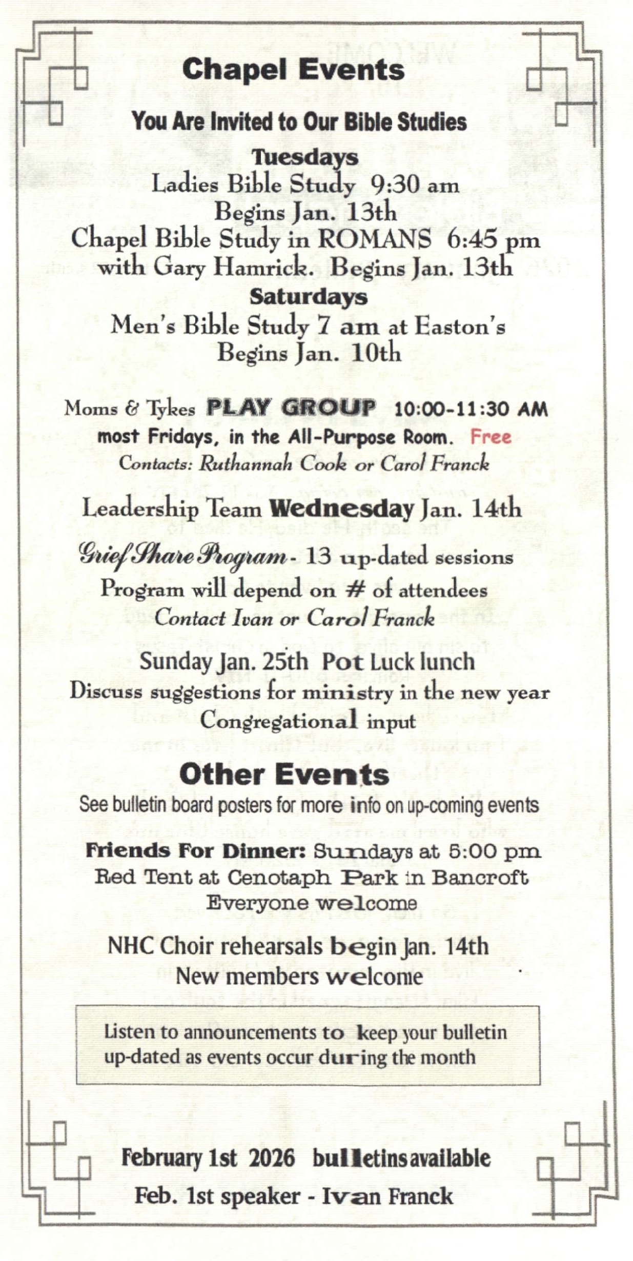 Regular Weekly Events