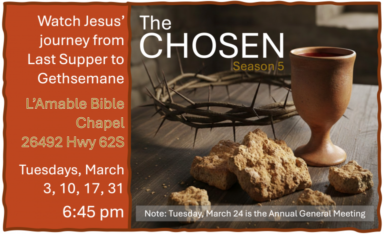 In the Month of March we will be watching “The Chosen” Season 5 which highlights Jesus’ last days in Jerusalem before the Crucifixion.